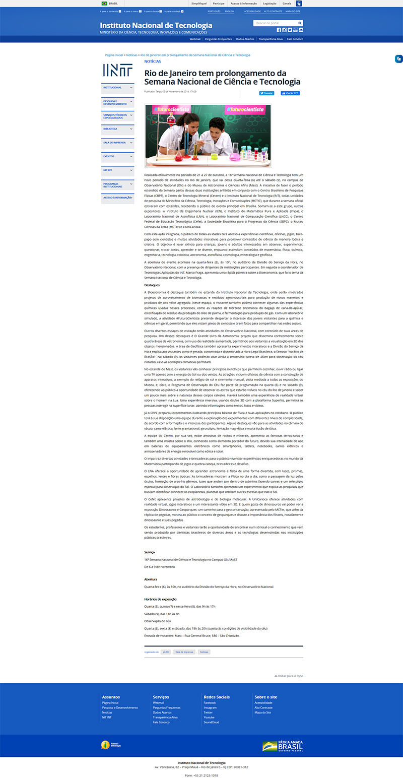 Portal INT | 16ª Semana Nacional de Ciência e Tecnologia