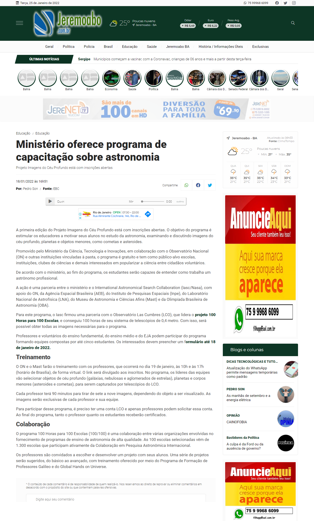 Portal Jeremoabo (Jeremoabo-BA) - MAST na reportagem 'Ministério oferece programa de capacitação sobre astronomia'