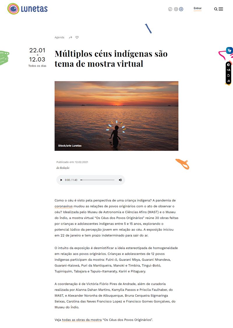 Portal Lunetas (São Paulo - SP) | MAST e Museu do Índio lançam mostra virtual 'Os Céus dos Povos Originários'