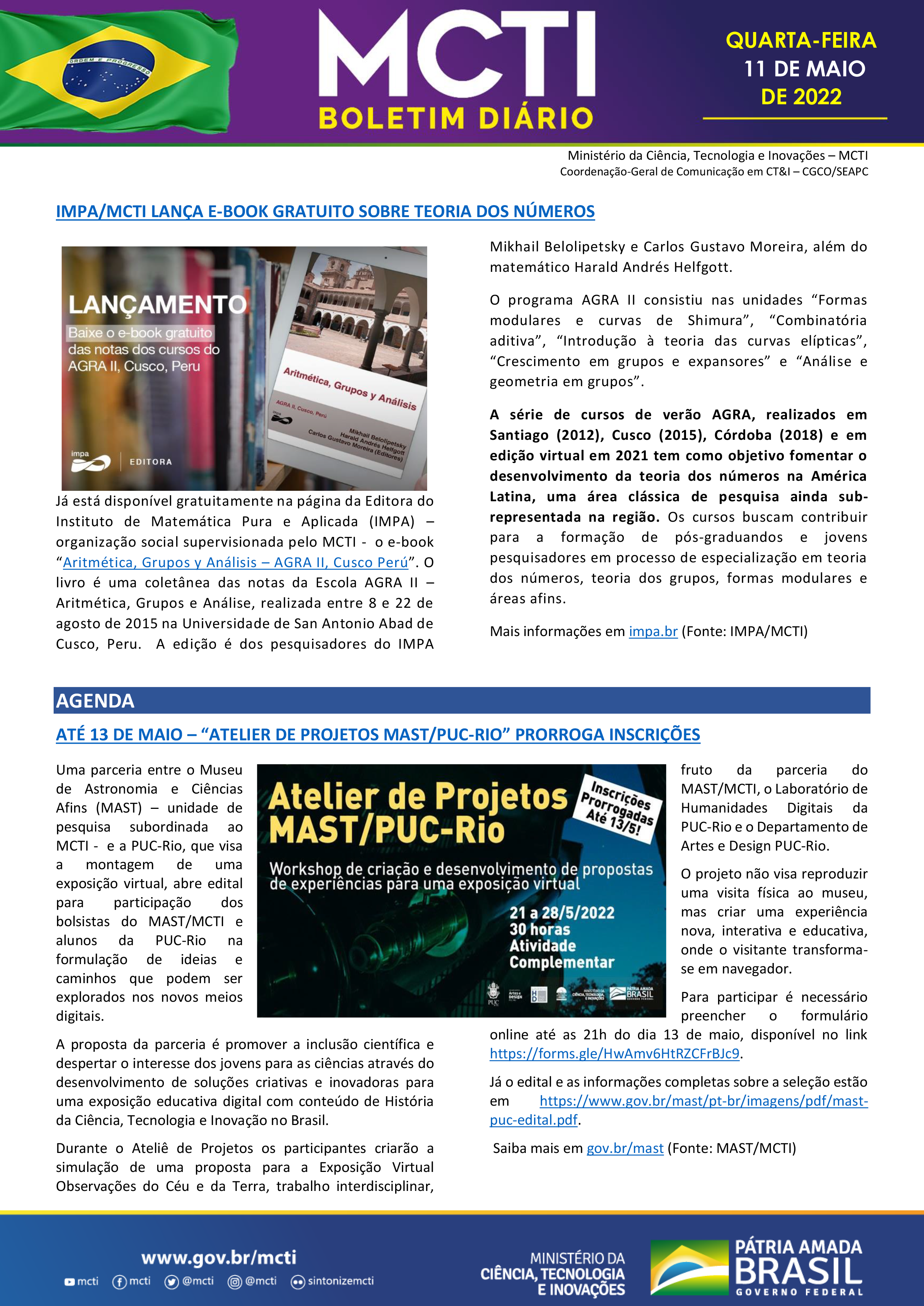 Portal MCTI / Boletim Diário - Até 13 De Maio – “Atelier de Projetos Mast/Puc-Rio” prorroga inscrições