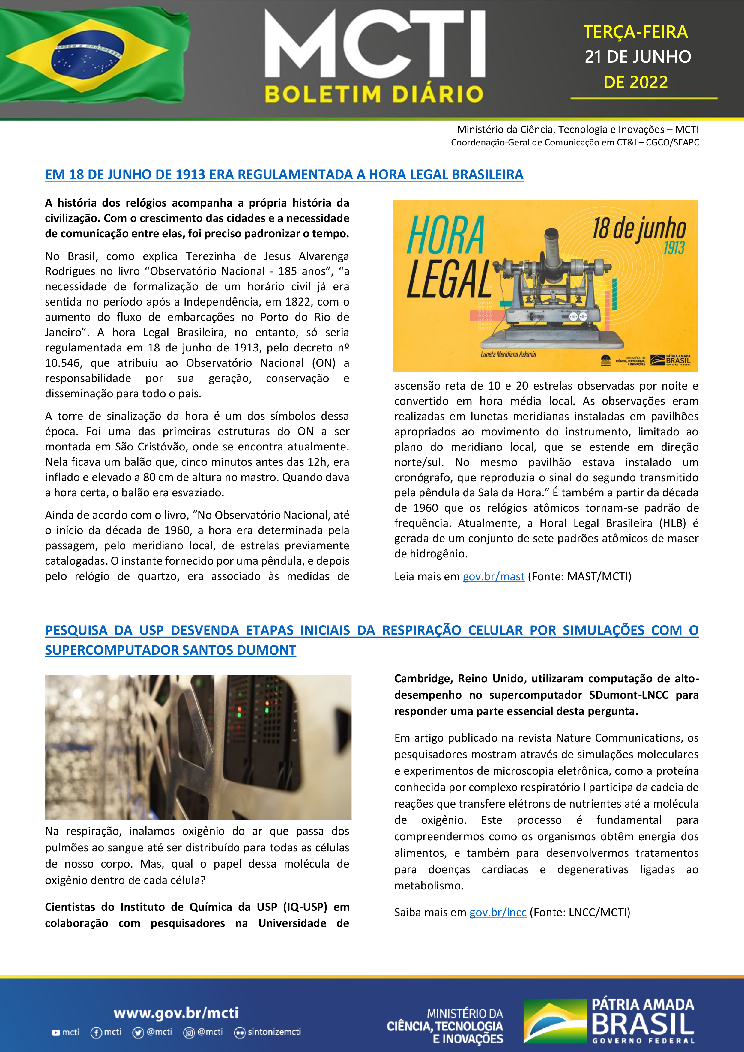 Portal MCTI / Boletim Diário - MAST celebra 109 anos de regulamentação da Hora Legal Brasileira