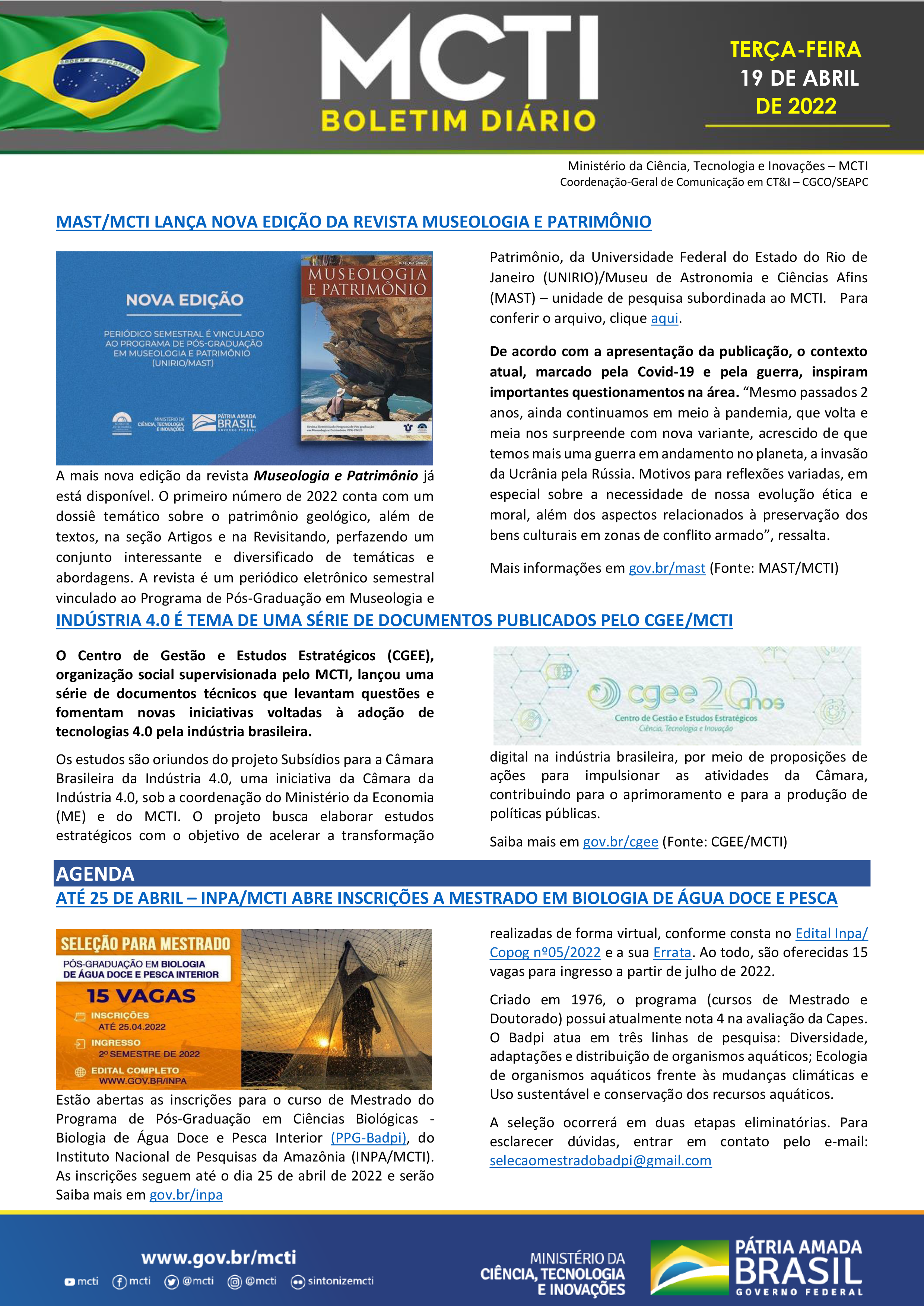 Portal MCTI / Boletim Diário - MAST/MCTI lança nova edição da revista Museologia e Patrimônio