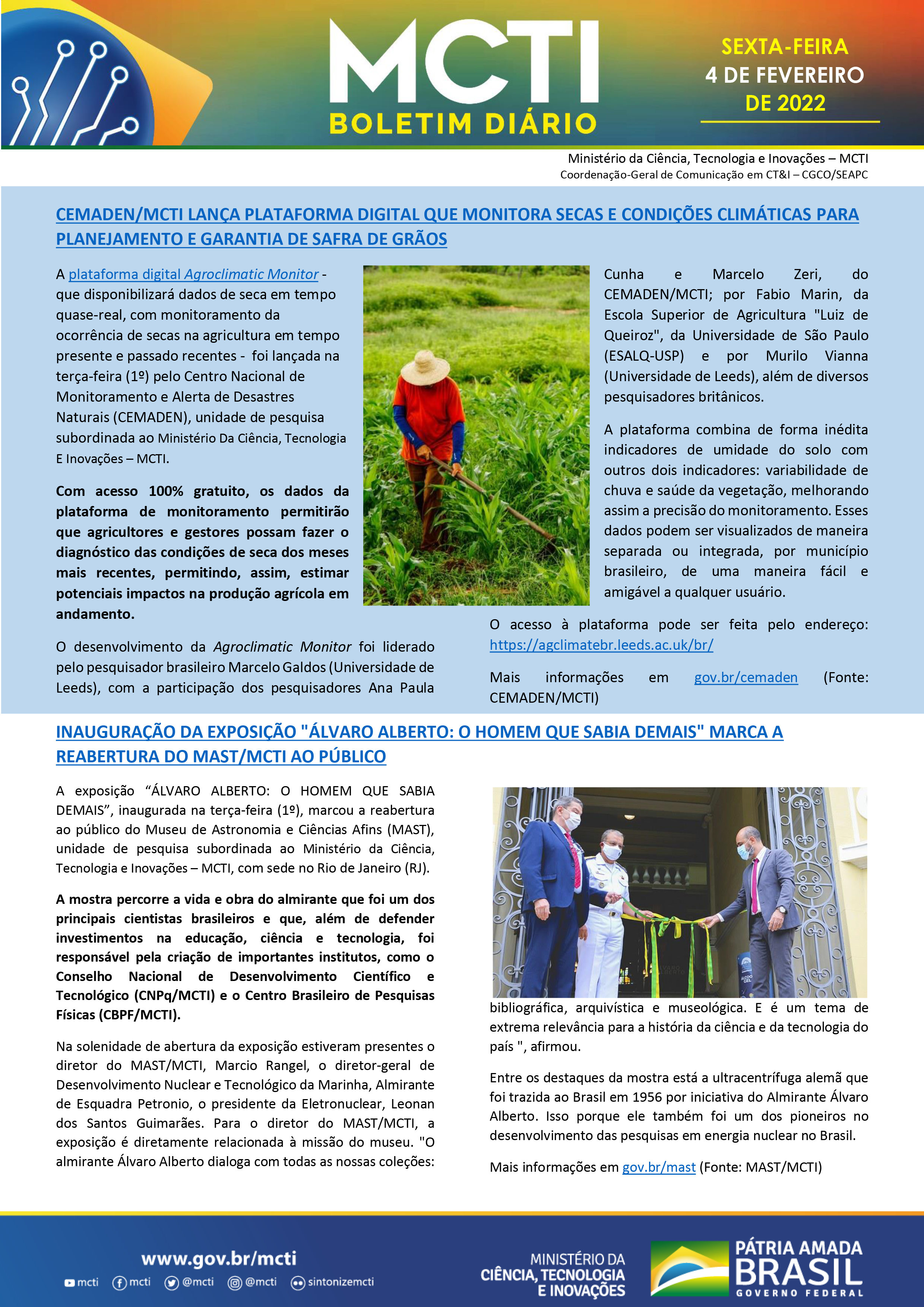 Portal MCTI / Boletim Diário - MAST reabre com exposição sobre Álvaro Alberto