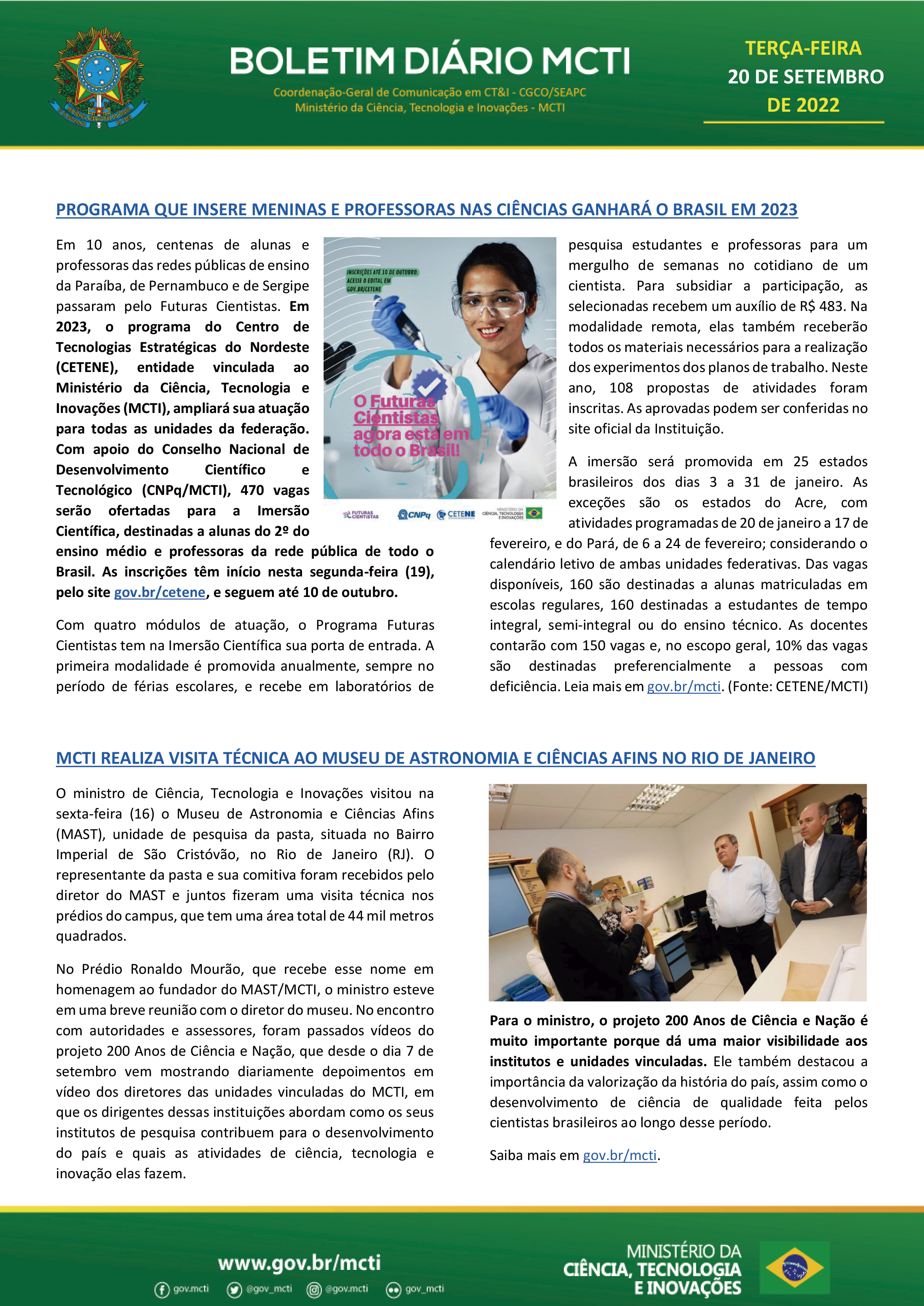 Portal MCTI / Boletim Diário - MCTI realiza visita técnica ao Museu de Astronomia e Ciências Afins no Rio de Janeiro