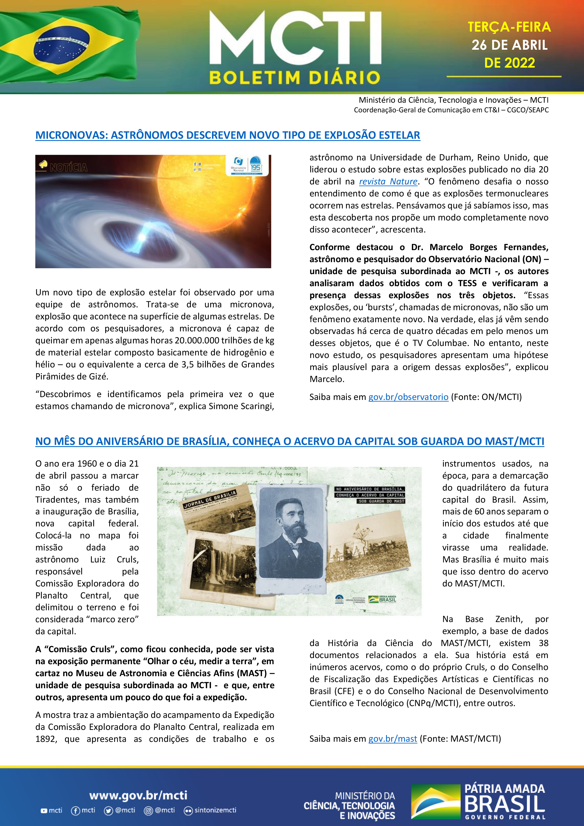 Portal MCTI / Boletim Diário - No Mês do aniversário de Brasília, conheça o Acervo Da Capital Sob Guarda Do MAST/MCTI