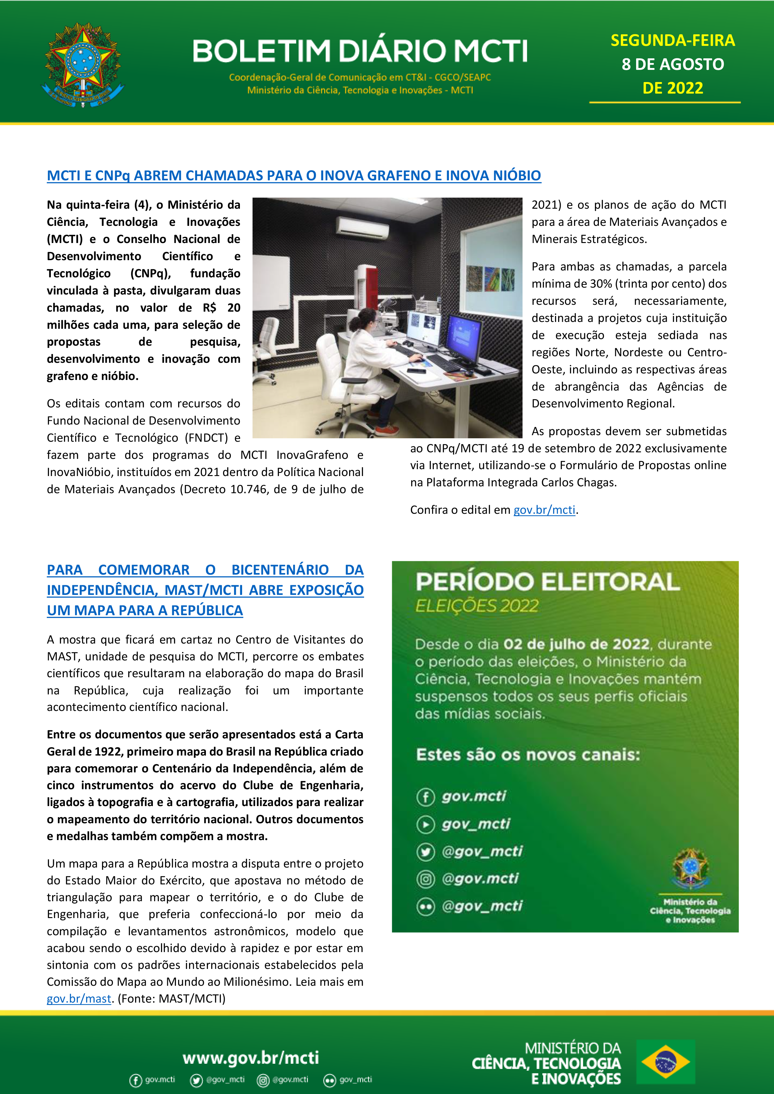 Portal MCTI / Boletim Diário - Para comemorar o Bicentenário da Independência, MAST/MCTI abre a exposição 'Um Mapa Para a República'