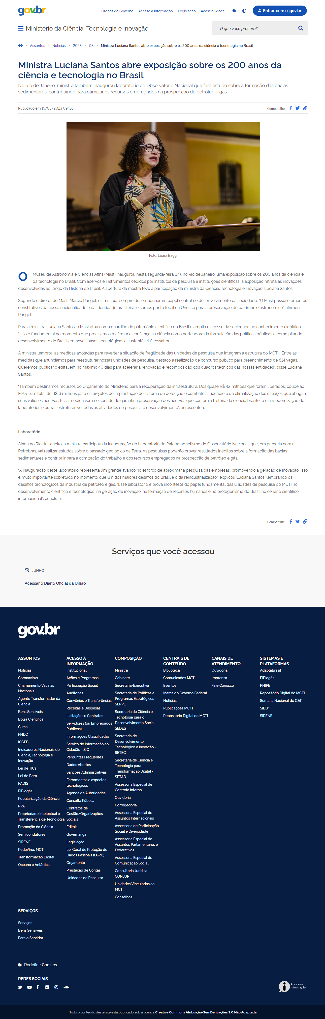 Portal MCTI - Ministra Luciana Santos abre exposição sobre os 200 anos da ciência e tecnologia no Brasil