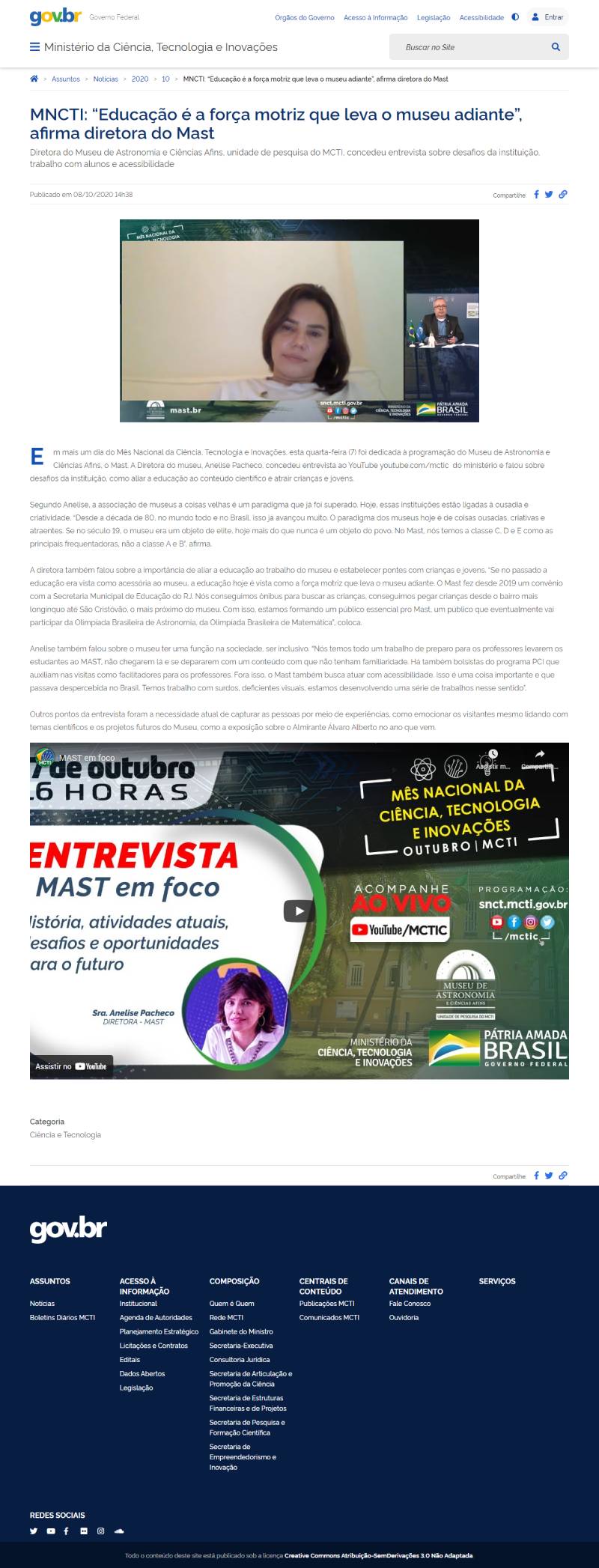 Portal MCTI | MNCTI: “Educação é a força motriz que leva o museu adiante”, afirma diretora do Mast, Anelise Pacheco