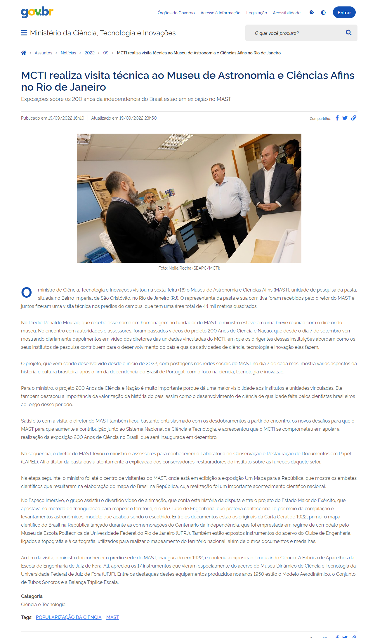 Portal MCTI / Notícias - MCTI realiza visita técnica ao Museu de Astronomia e Ciências Afins no Rio de Janeiro