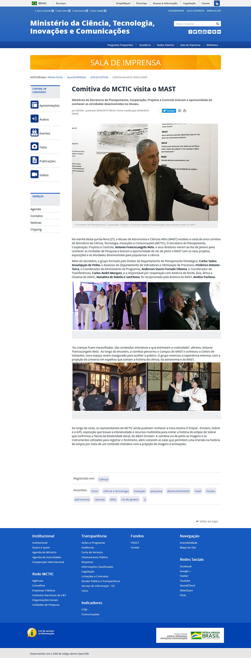 Portal MCTIC | Comitiva do MCTIC visita o MAST