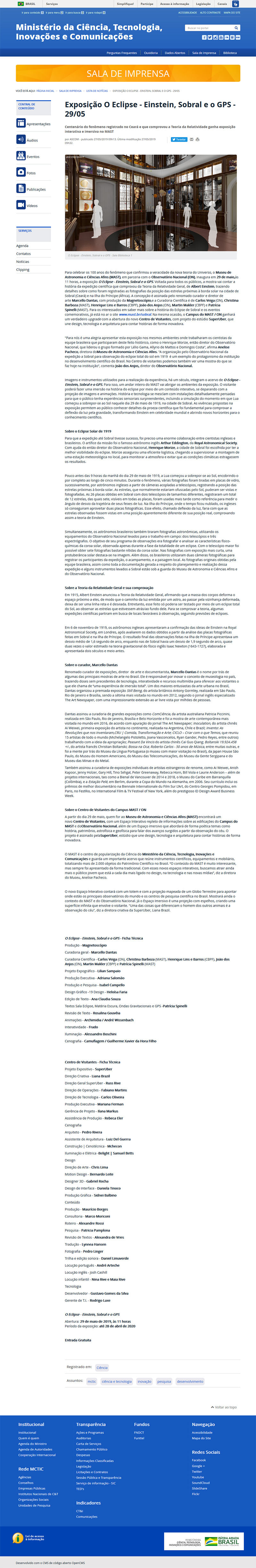 Portal MCTIC | Exposição O Eclipse - Einstein, Sobral e o GPS - 29/05