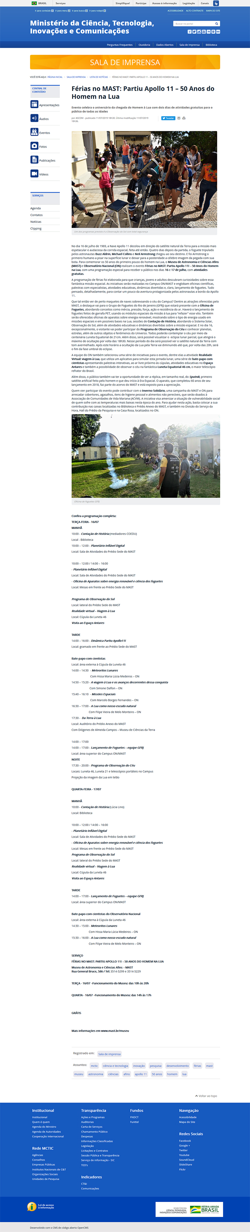 Portal MCTIC | Férias no MAST / 50 Anos do Homem na Lua