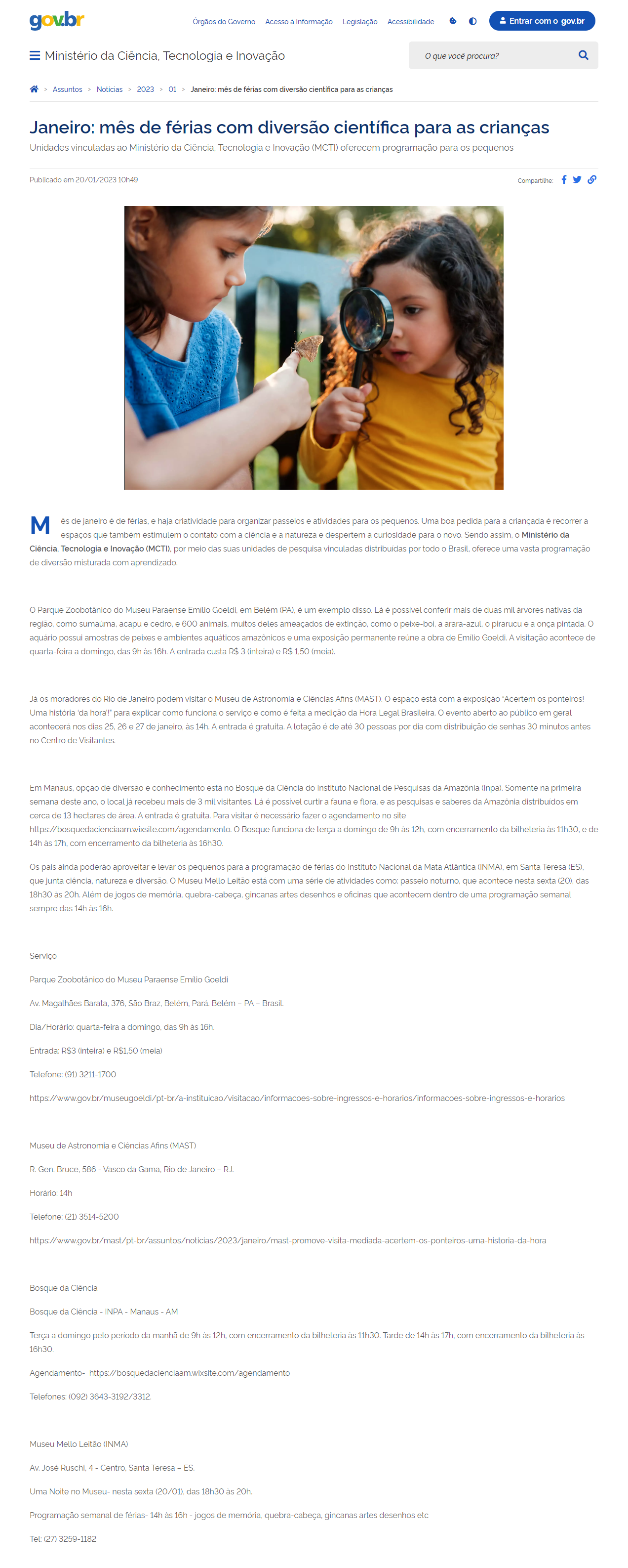 Portal MCTI - Janeiro: mês de férias com diversão científica para as crianças