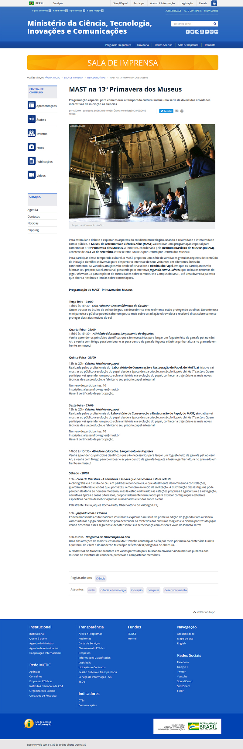 Portal MCTIC - Sala de Imprensa | MAST na 13ª Primavera dos Museus