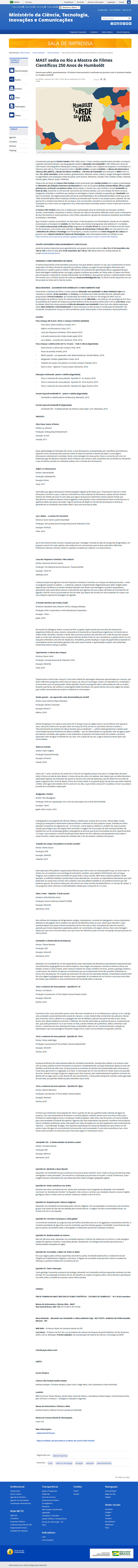 Portal MCTIC - Sala de Imprensa | MAST sedia Mostra Filmes Humboldt 250 anos