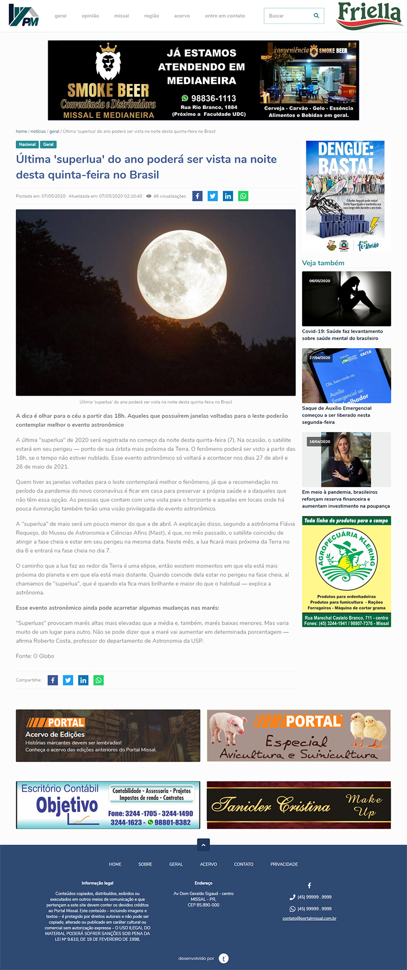 Portal Missal Notícias (Missal - PR) | MAST na reportagem sobre a última Superlua de 2020