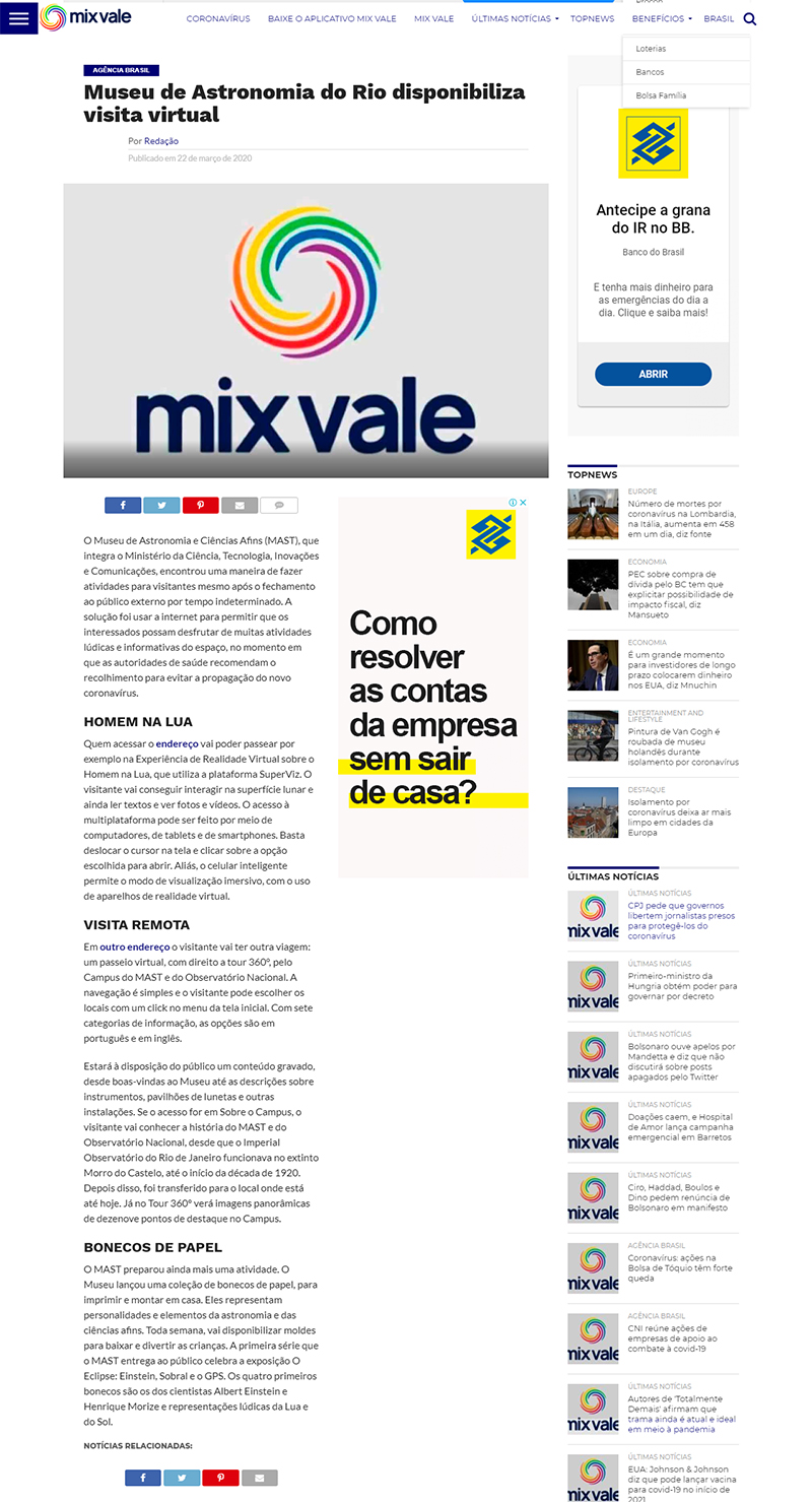 Portal Mix Vale (Cruzeiro – SP) | MAST disponibiliza visita virtual