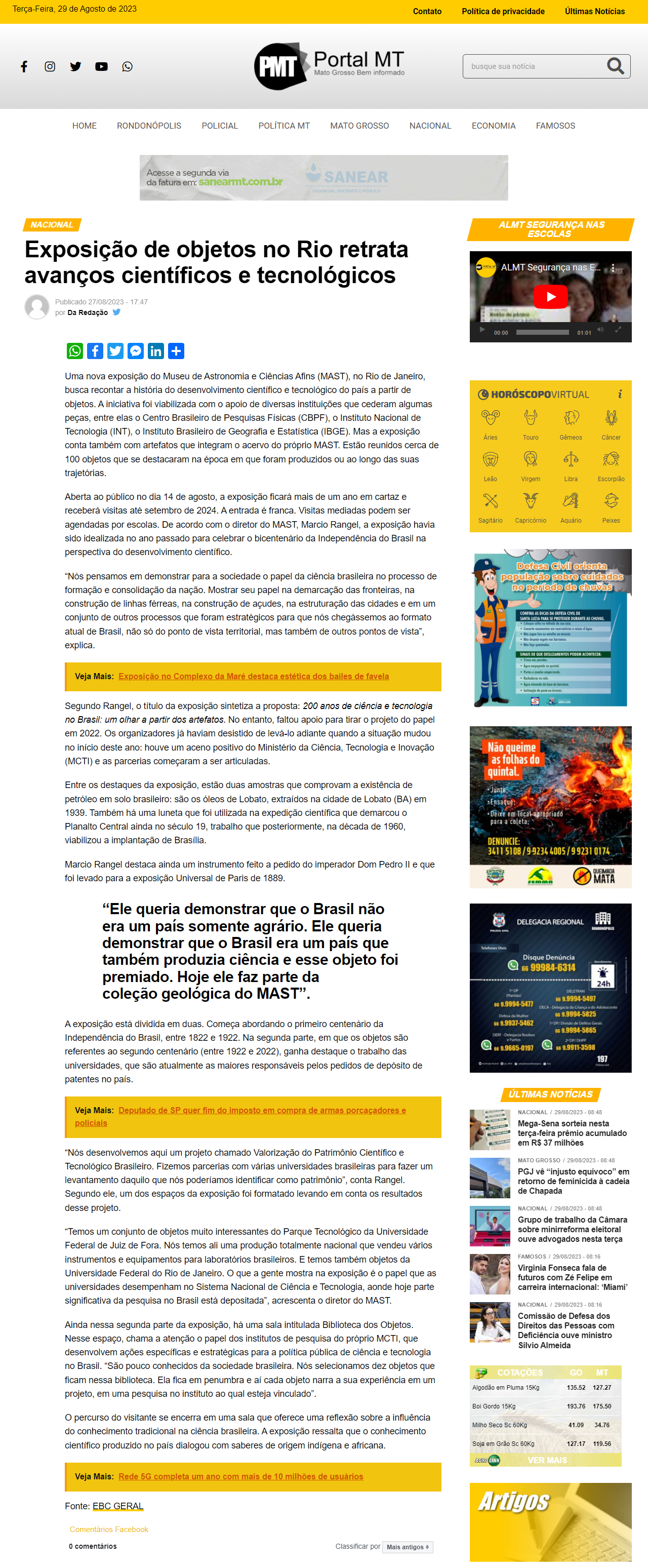 Portal MT - Exposição de objetos no Rio retrata avanços científicos e tecnológicos
