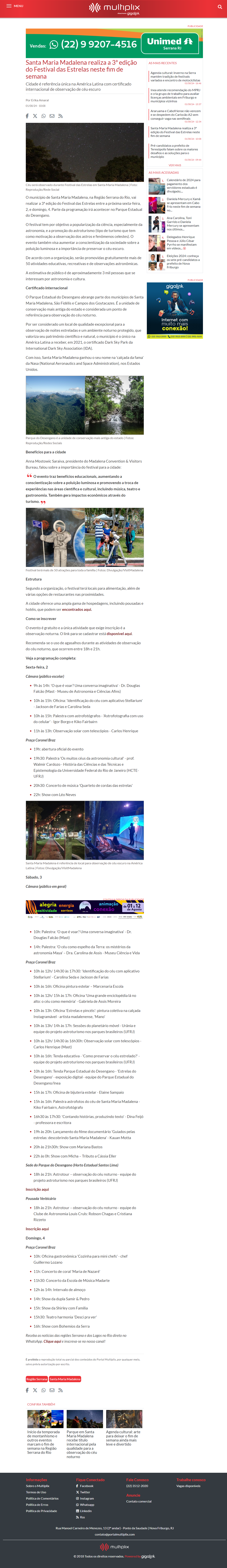 Portal Multiplix - Santa Maria Madalena realiza a 3ª edição do Festival das Estrelas neste fim de semana