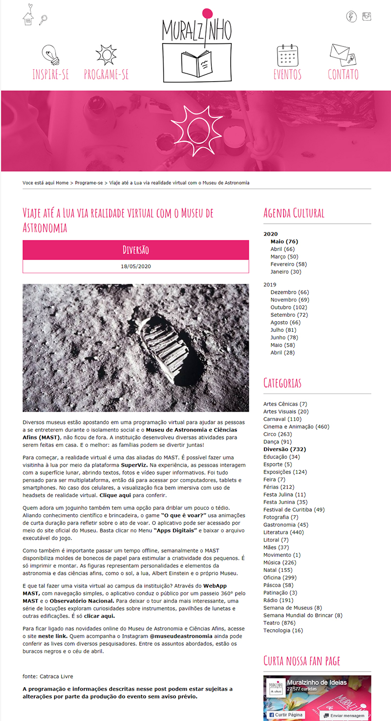 Portal Muralzinho de Ideias / Curitiba – PR -(atualização) | MAST disponibiliza visita virtual ‘O Homem na Lua’
