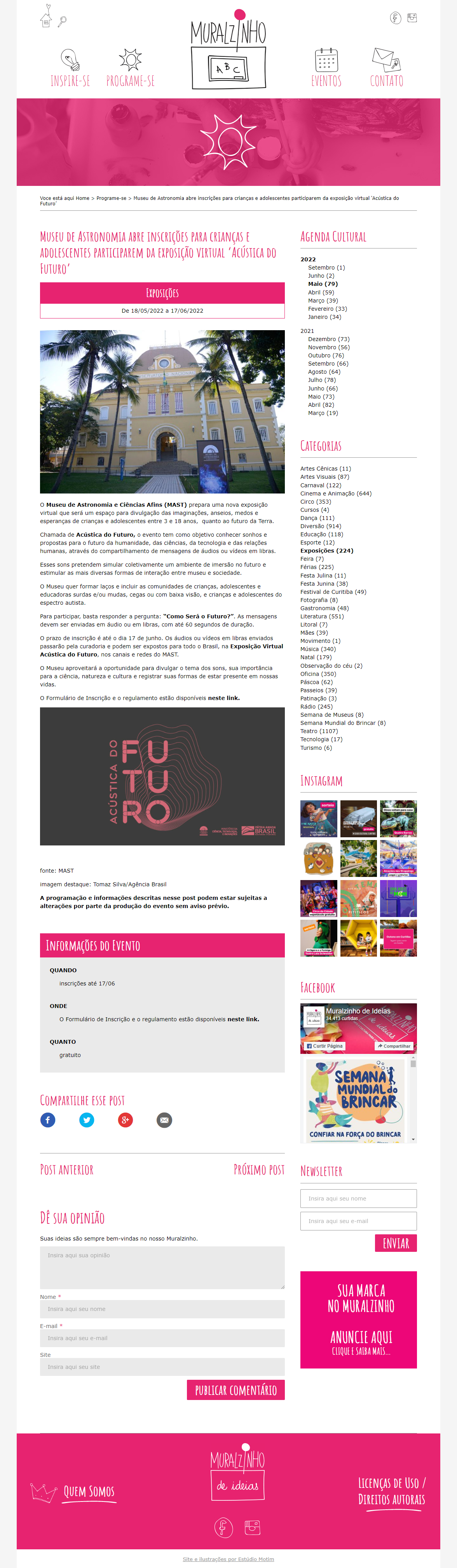 Portal Muralzinho de Ideias (Curitiba) - MAST abre inscrições para crianças e adolescentes participarem da exposição virtual 'Acústica do Futuro'