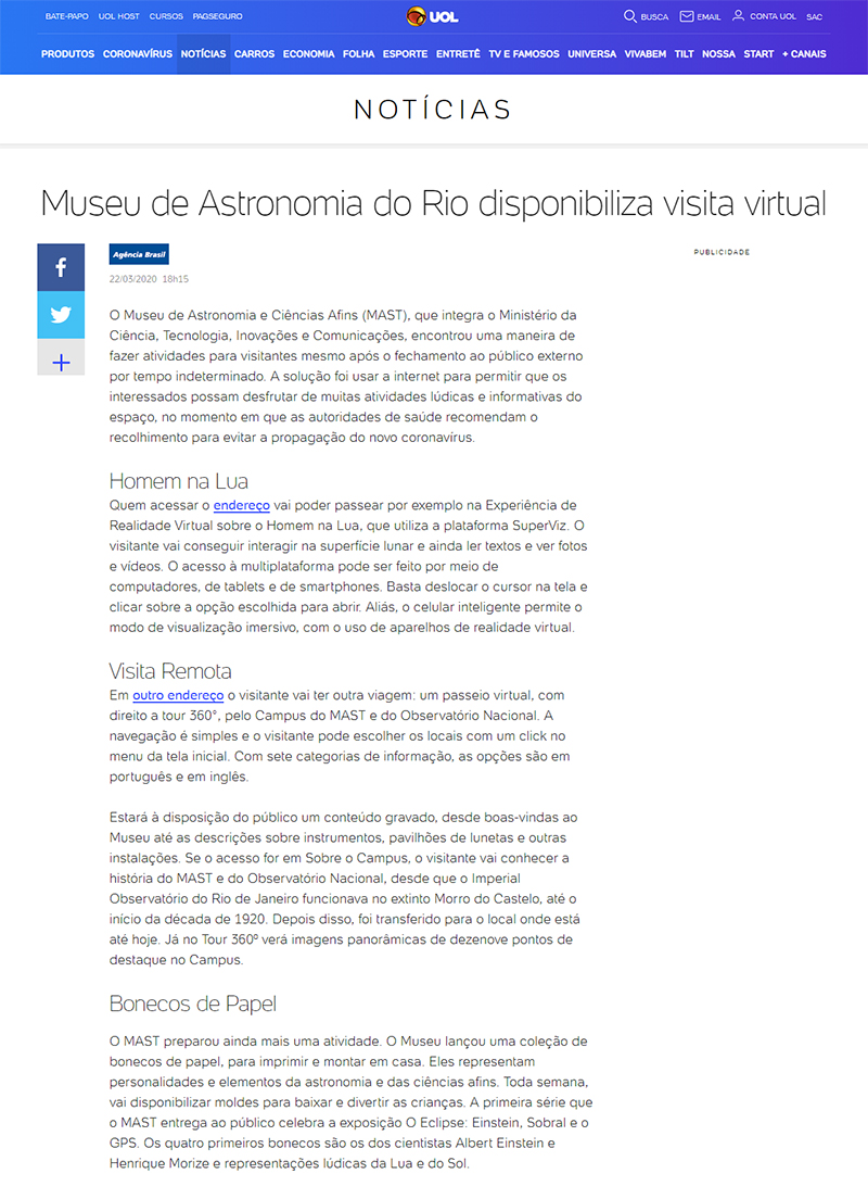 Portal Notícias UOL | MAST disponibiliza visita virtual