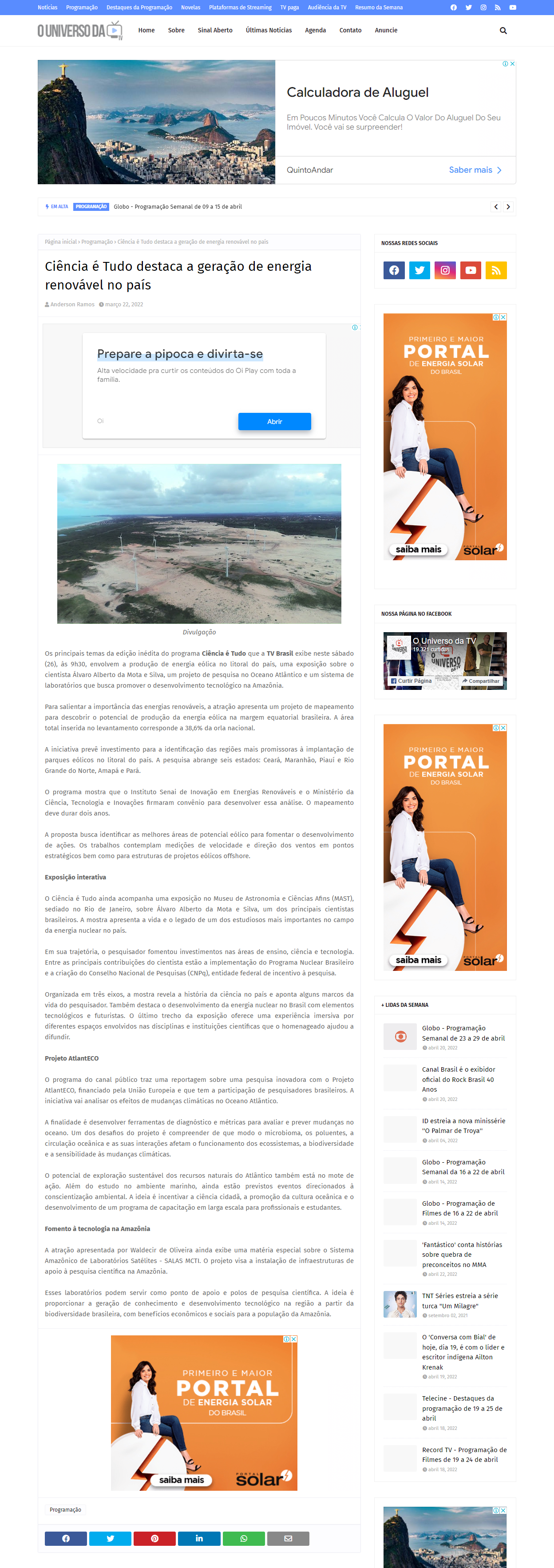 Portal O Universo da TV - MAST na reportagem do programa 'Ciência É Tudo' (TV Brasil) sobre a exposição 'Álvaro Alberto: O Homem Que Sabia Demais'