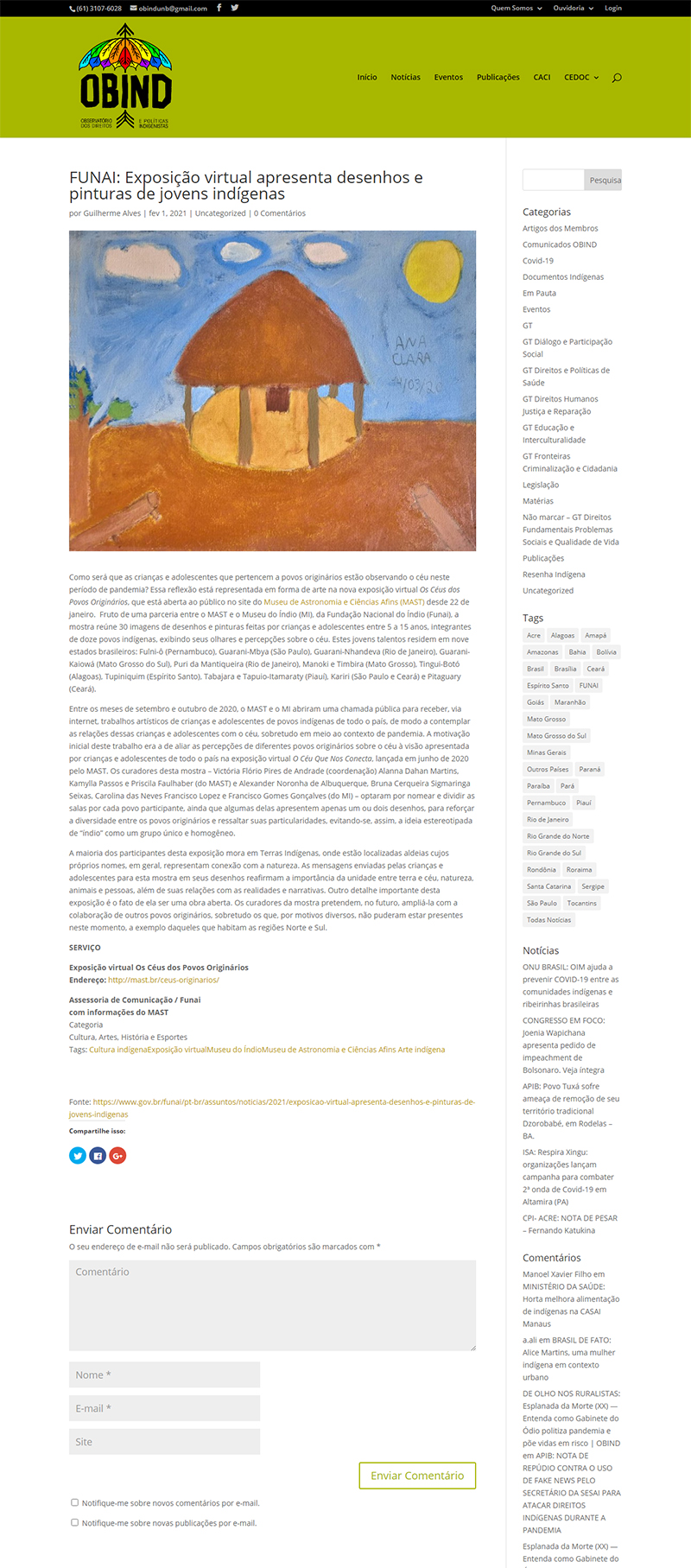 Portal OBIND | MAST e Museu do Índio lançam mostra virtual 'Os Céus dos Povos Originários'