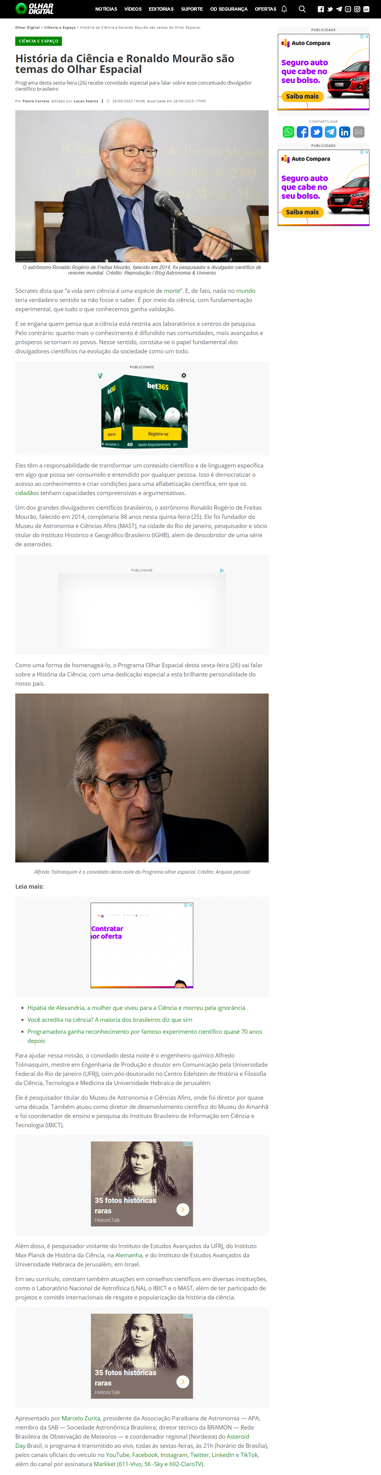 Portal Olhar Digital - História da Ciência e Ronaldo Mourão são temas do Olhar Espacial