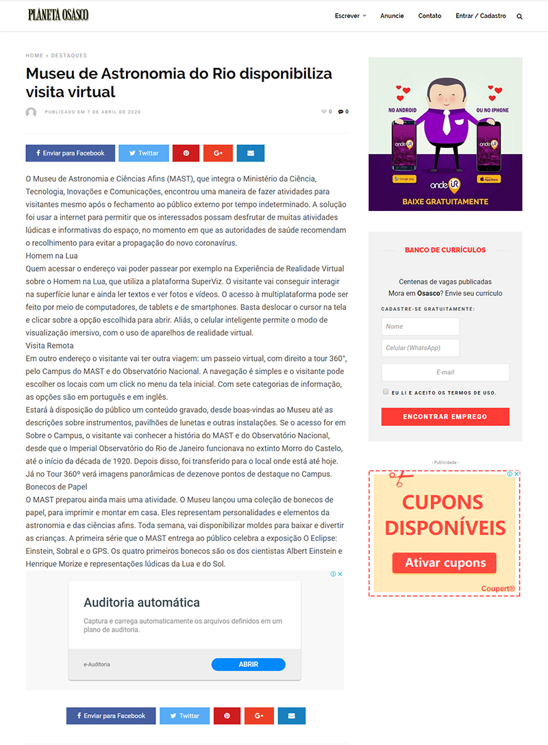 Portal Planeta Osasco (Osasco - SP) | MAST disponibiliza visita virtual