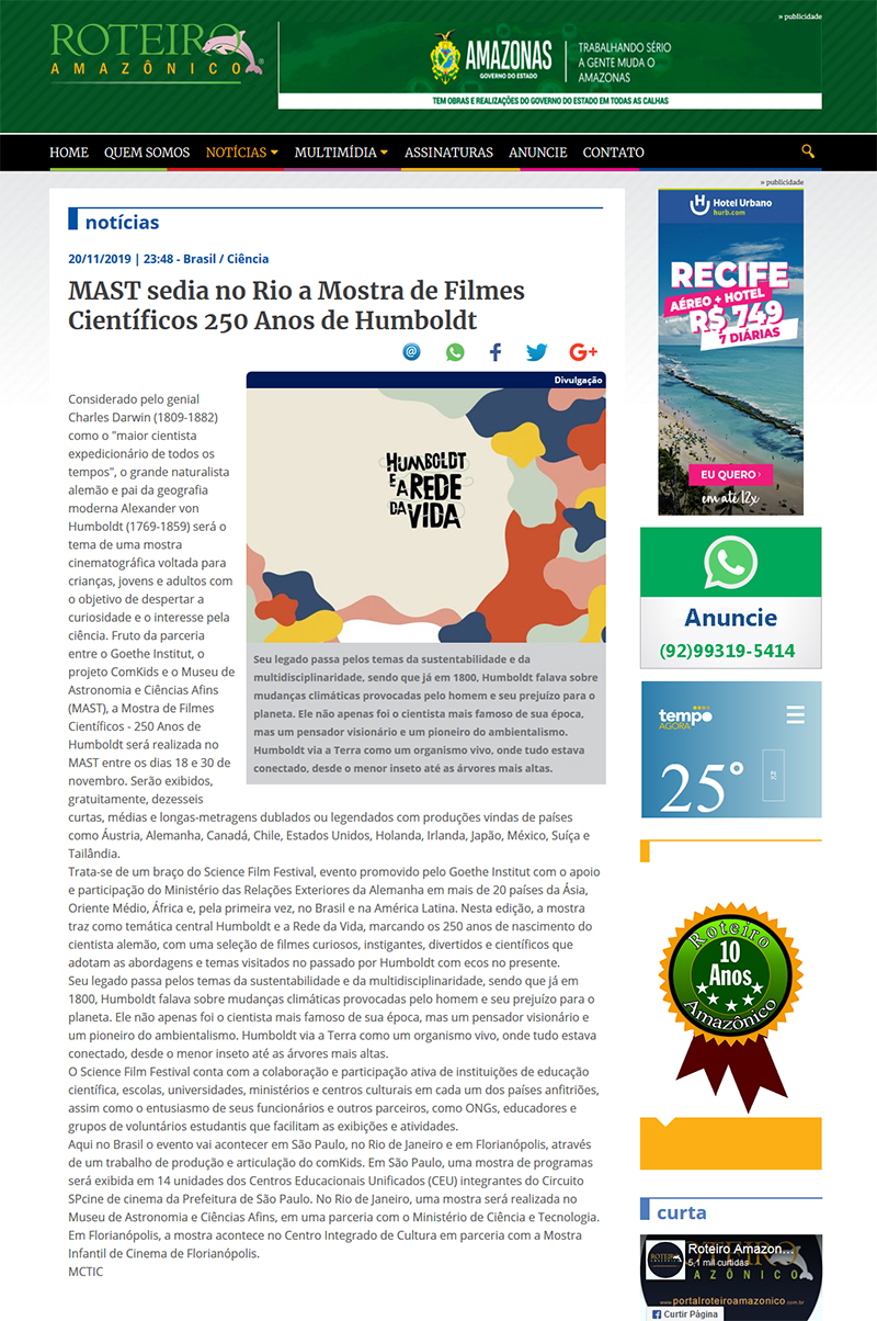 Portal Roteiro Amazônico | MAST sedia Mostra Filmes Humboldt 250 anos
