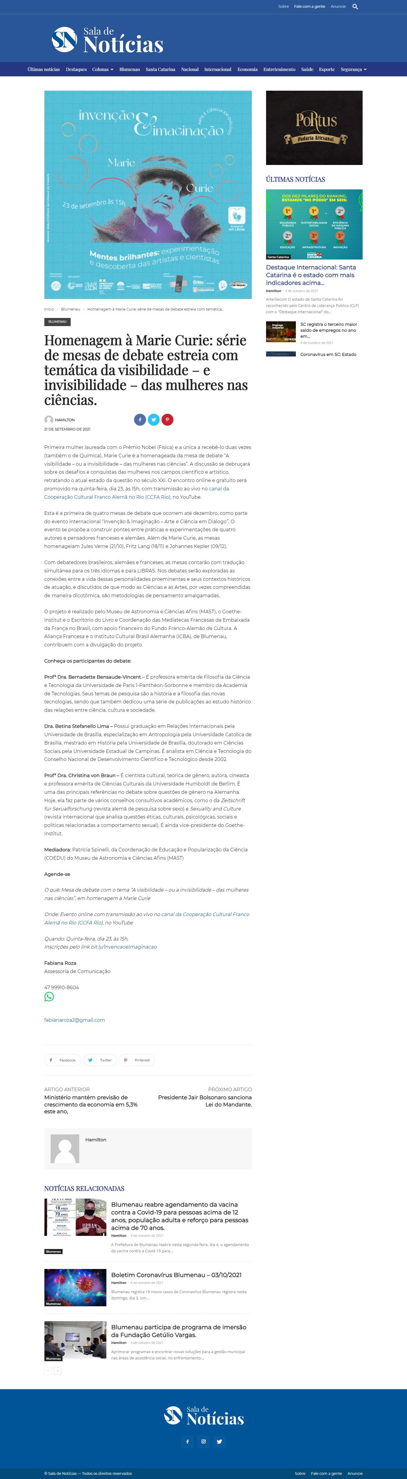 Portal Sala de Notícias (Blumenau-SC) - MAST, Goethe-Institut e Embaixada da França realizam o projeto 'Invenção & Imaginação'