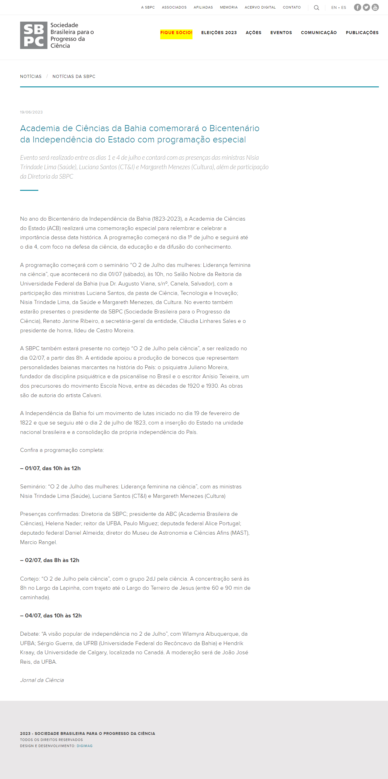 Portal SBPC - Academia de Ciências da Bahia comemorará o Bicentenário da Independência do Estado com programação especial