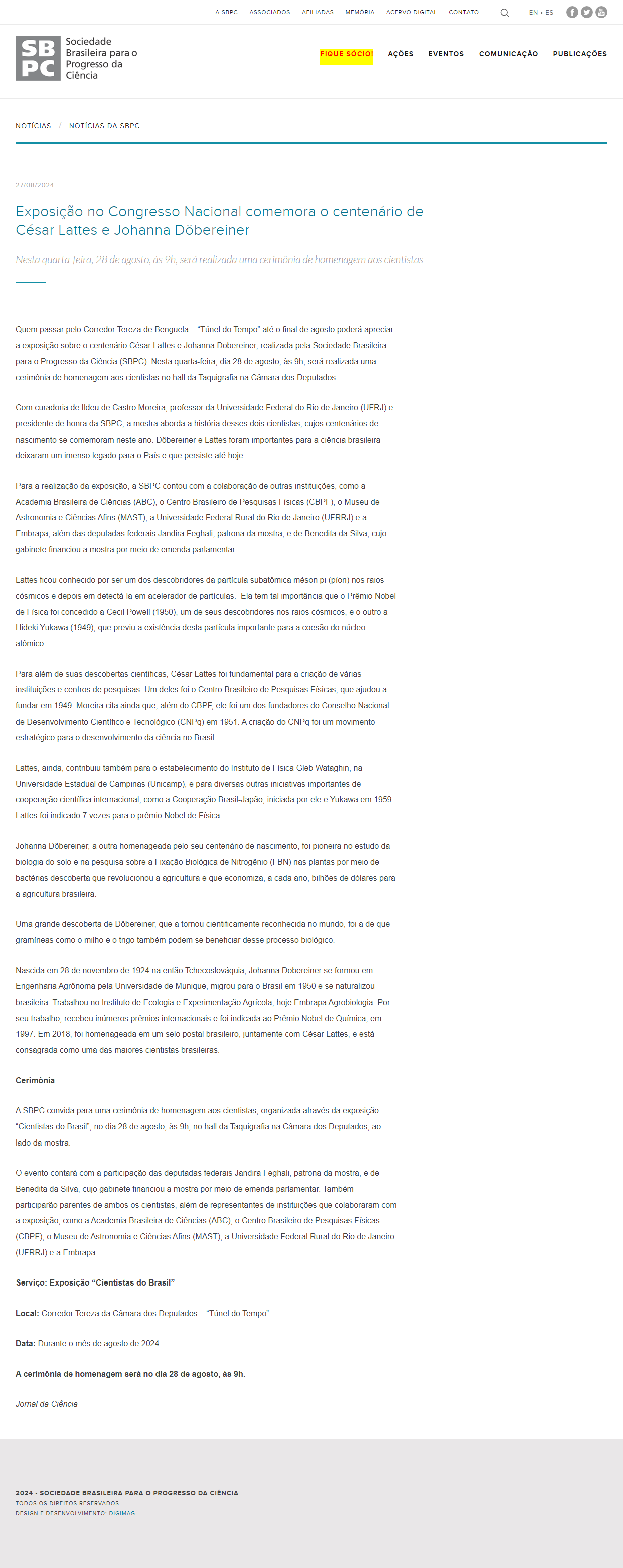 Portal SBPC - Exposição no Congresso Nacional comemora o centenário de César Lattes e Johanna Döbereiner