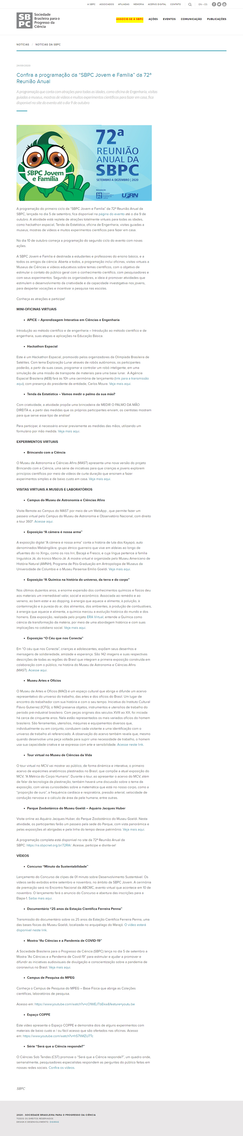 Portal SBPC | MAST na reportagem "Confira a programação da “SBPC Jovem e Família” da 72ª Reunião Anual"