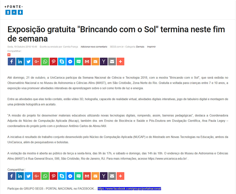 Portal SEGS | Exposição gratuita "Brincando com o Sol" termina neste fim de semana