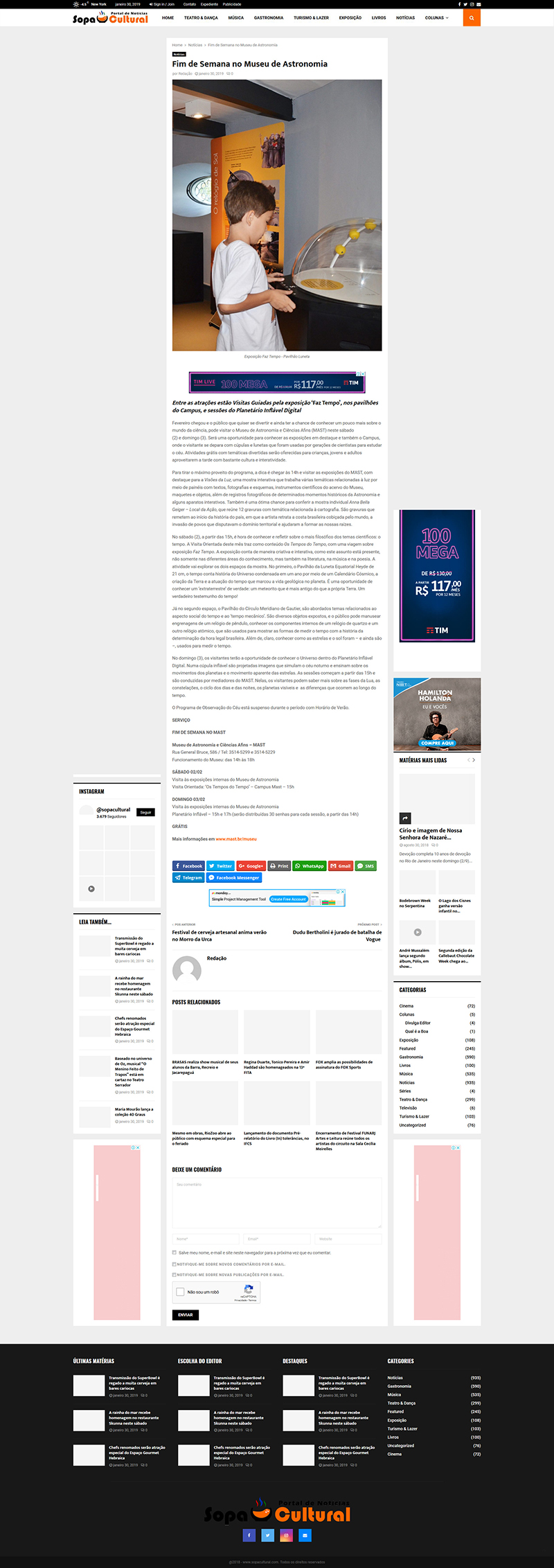 Portal Sopa Cultural | Fim de Semana no Museu de Astronomia