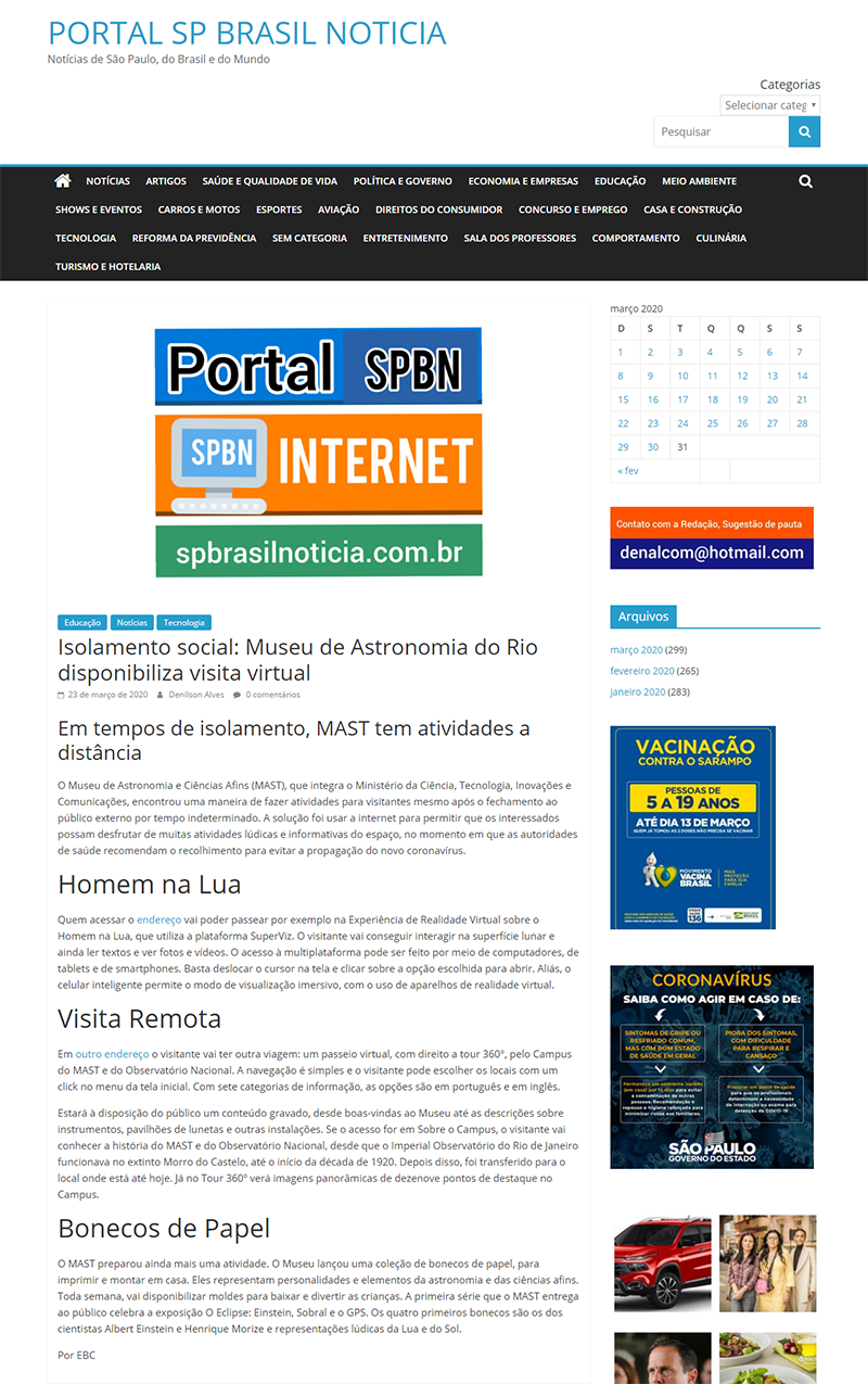 Portal SP Brasil Notícia (São Paulo – SP) | MAST disponibiliza visita virtual
