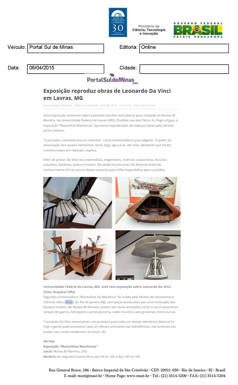 Portal Sul de Minas | Exposição reproduz obras de Leonardo da Vinci em Lavras, MG