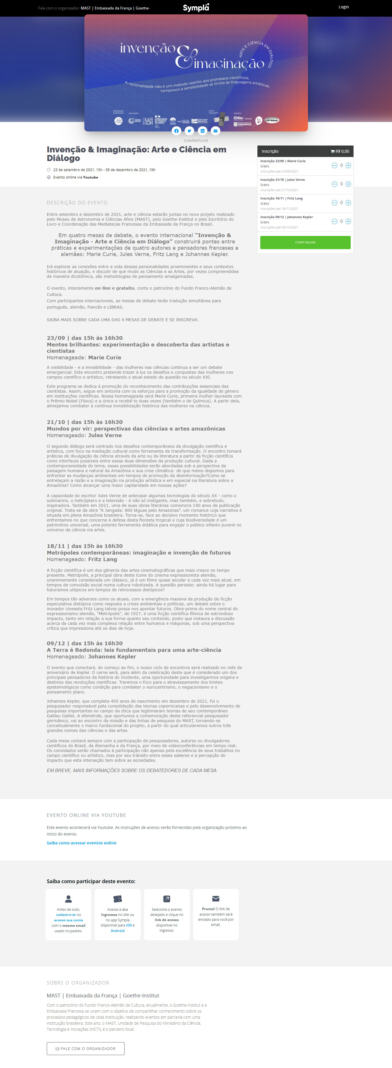 Portal Sympla - MAST no projeto 'Invenção & Imaginação: Arte e Ciência em Diálogo'