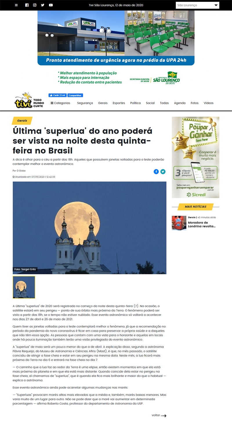 Portal TIVI Net (São Lourenço do Oeste-SC) | MAST na reportagem sobre a última Superlua de 2020
