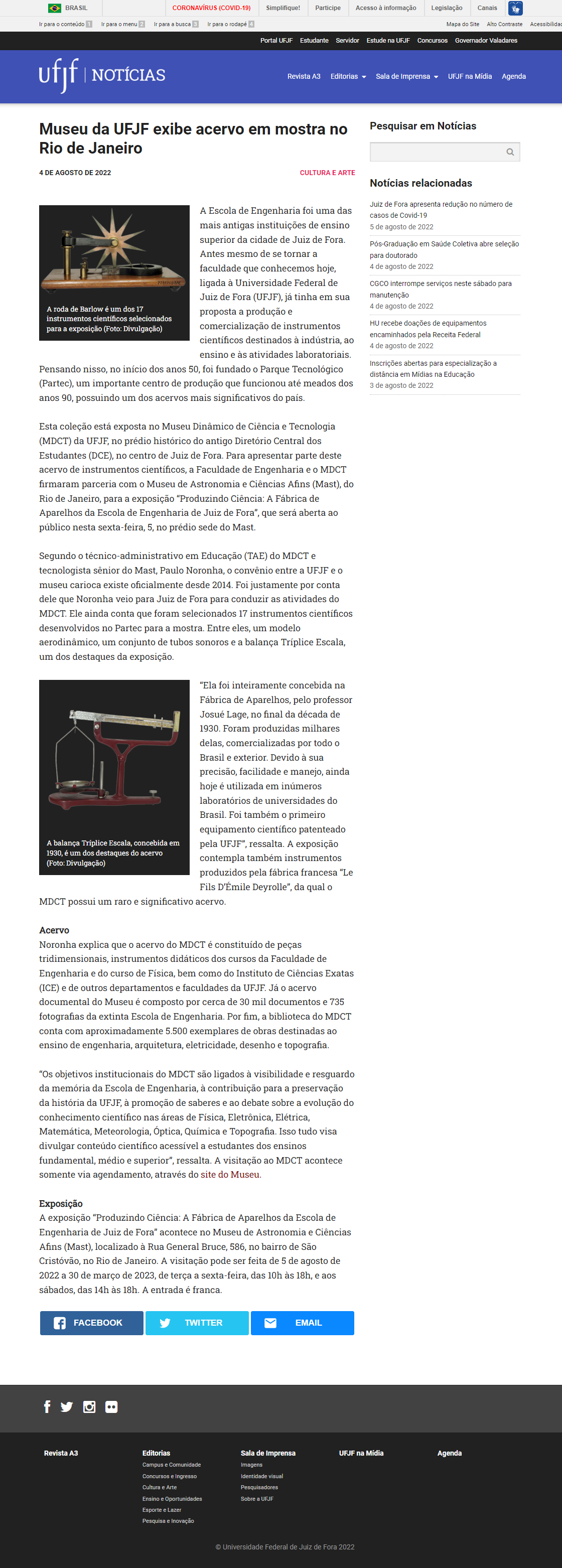 Portal UFJF (Universidade Federal de Juiz de Fora) - MAST inaugura as exposições 'Um Mapa Para a República' e 'Produzindo Ciência'