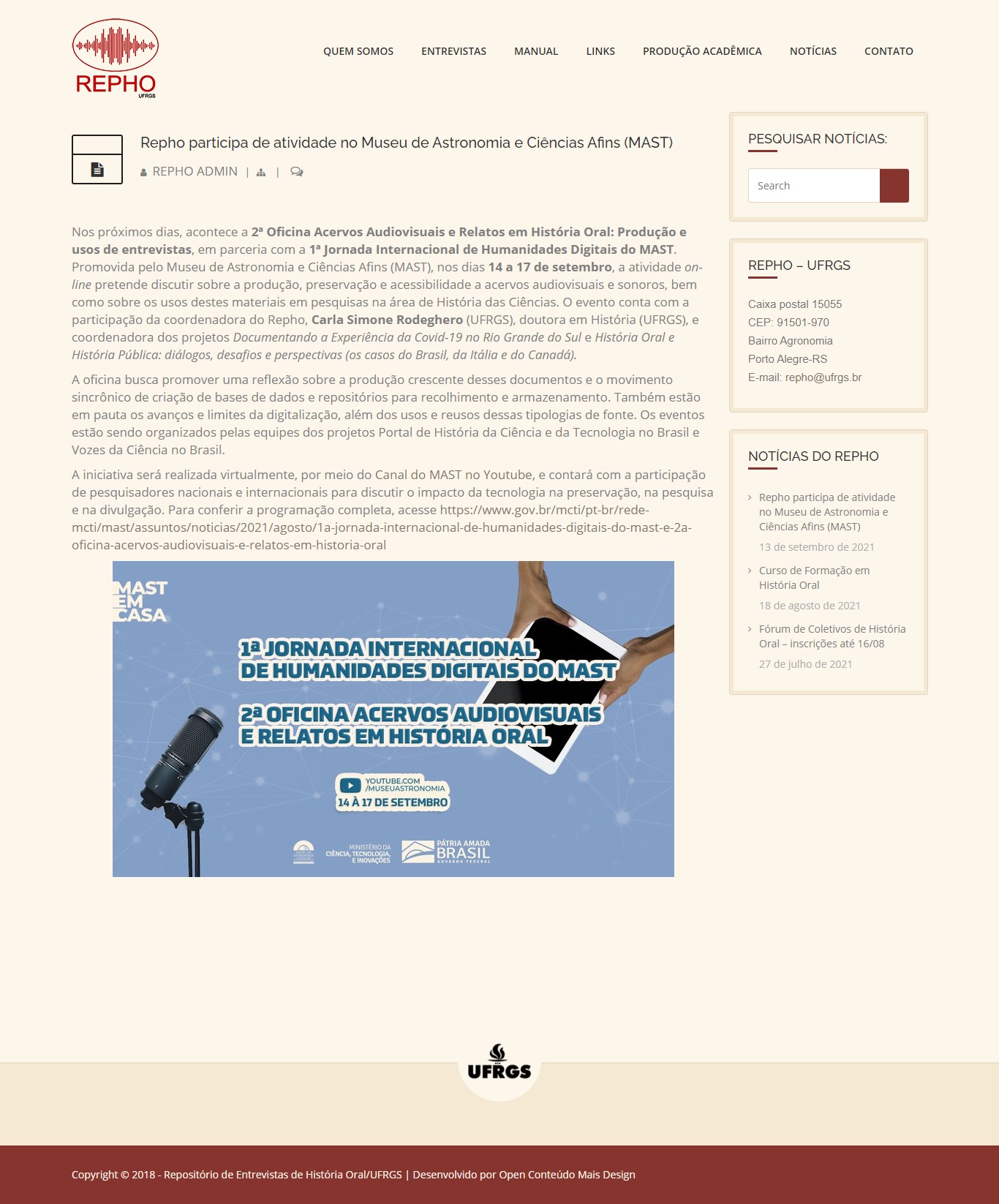 Portal UFRGS / REPHO (Repositório de Entrevistas de História Oral) - REPHO participa da 1ª Jornada Internacional de Humanidades Digitais do MAST