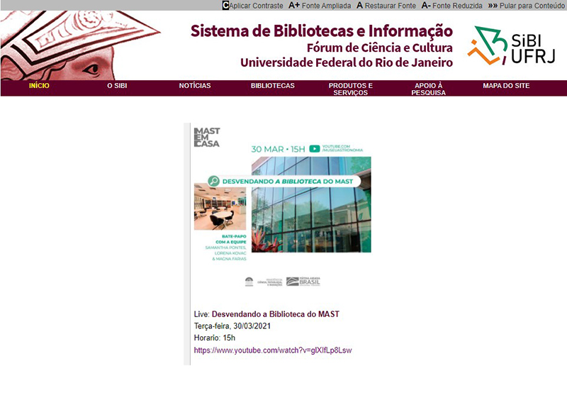 Portal UFRJ / SIBI - Sistema de Bibliotecas e Informação | Live 'Desvendando a Biblioteca do MAST'