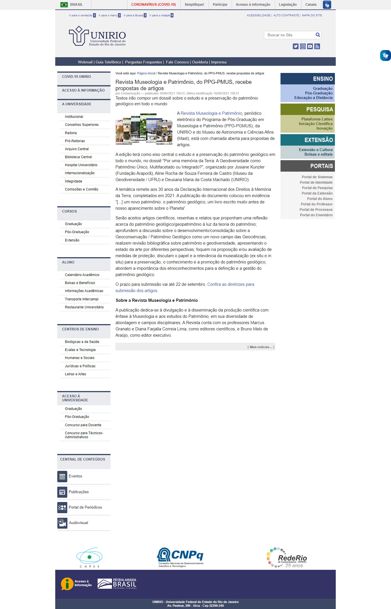 Portal UNIRIO - MAST faz chamada pública para a Revista Museologia e Patrimônio 2022