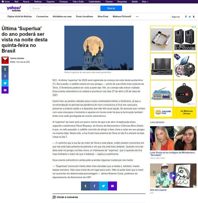Portal Yahoo Notícias | MAST na reportagem sobre a última Superlua de 2020