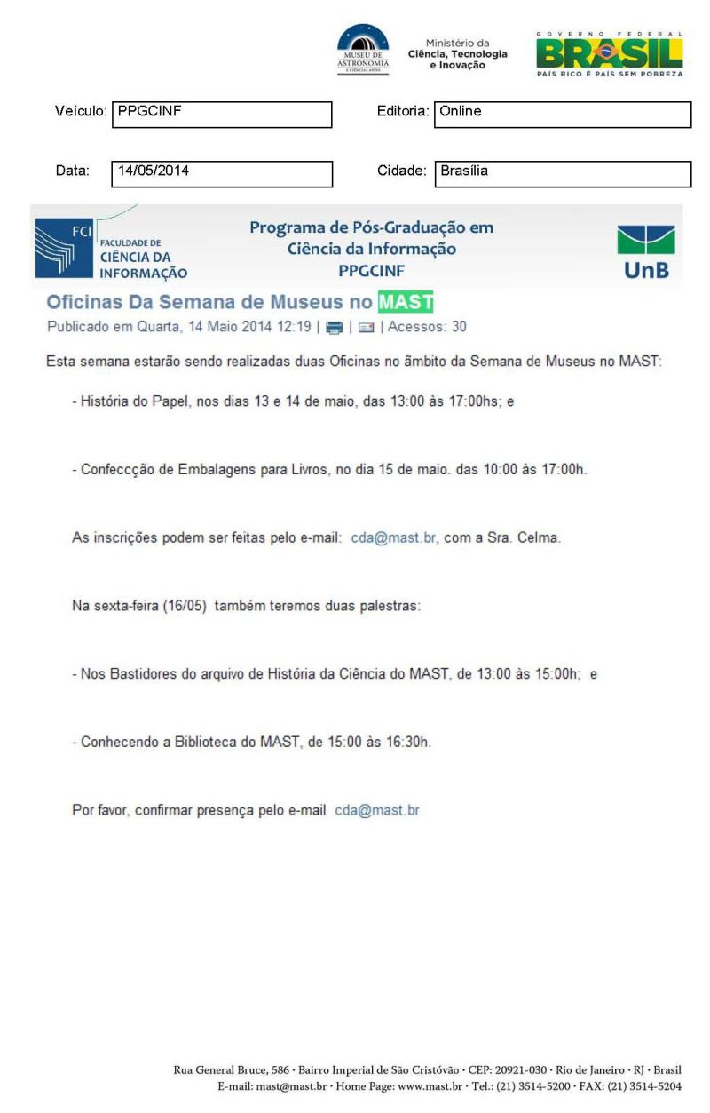 PPGCINF | Oficinas da Semana de Museus no MAST