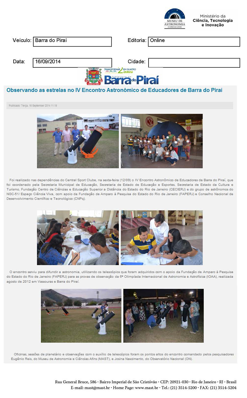 Prefeitura Barra do Piraí | Observando as estrelas no IV Encontro Astronômico de Educadores de Barra do Piraí