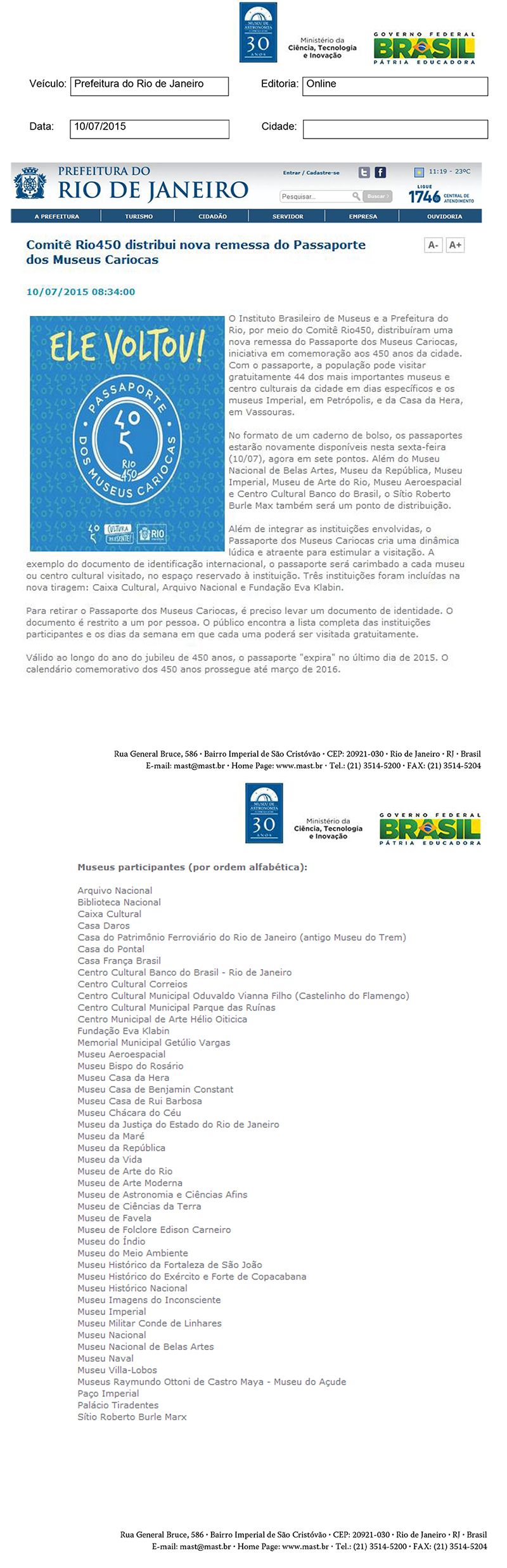 Prefeitura do Rio de Janeiro | Comitê Rio 450 distribui nova remessa do Passaporte dos Museus Cariocas