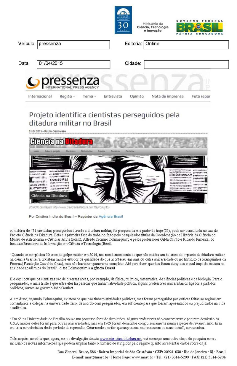 Pressenza | Projeto identifica cientistas perseguidos pela ditadura militar no Brasil